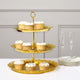 - Our 3-tier cake stand is firm, reliable, and stable. Each tier is made of high-quality plastic and the tiers are interconnected by sturdy posts with screws for strength and stability.