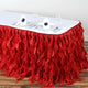 - 17ft Skirts: Covers 4 sides on a 6ft x 2 1/2ft banquet table ( similar to the ones you find in Costco) - 15 clips recommended