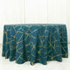 Seamless Round Polyester Tablecloth With Gold Foil Geometric Pattern 120" for 5 Foot Table With Floor-Length Drop