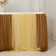 - 14ft Skirts: Covers 3 sides on a 6ft x 2 1/2ft banquet table ( similar to the ones you find in Costco;10 clips recommended).